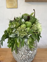 今月のフラワーアレンジ🌼サマーフルーツトピアリーです✨かわいい器に爽やさを感じるお花や小さいりんごがかわいいです🌿#murari #平和台 #氷川台 #美容室 #トピアリー風